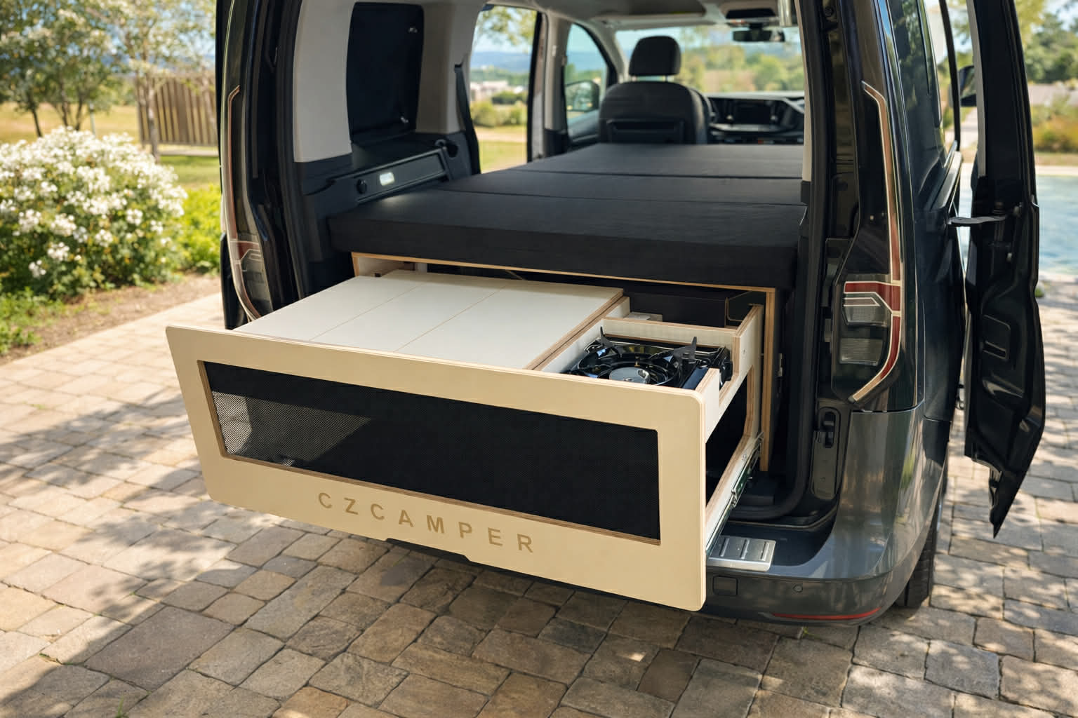 CZBOX L je středně velká modulární obytná vestavba do dodávky, určená pro menší osobní a užitkové vozy a větší MPV. Vestavba je vyráběna ve třech variantách a nabízí praktické řešení pro každodenní využití vozu i cestování.